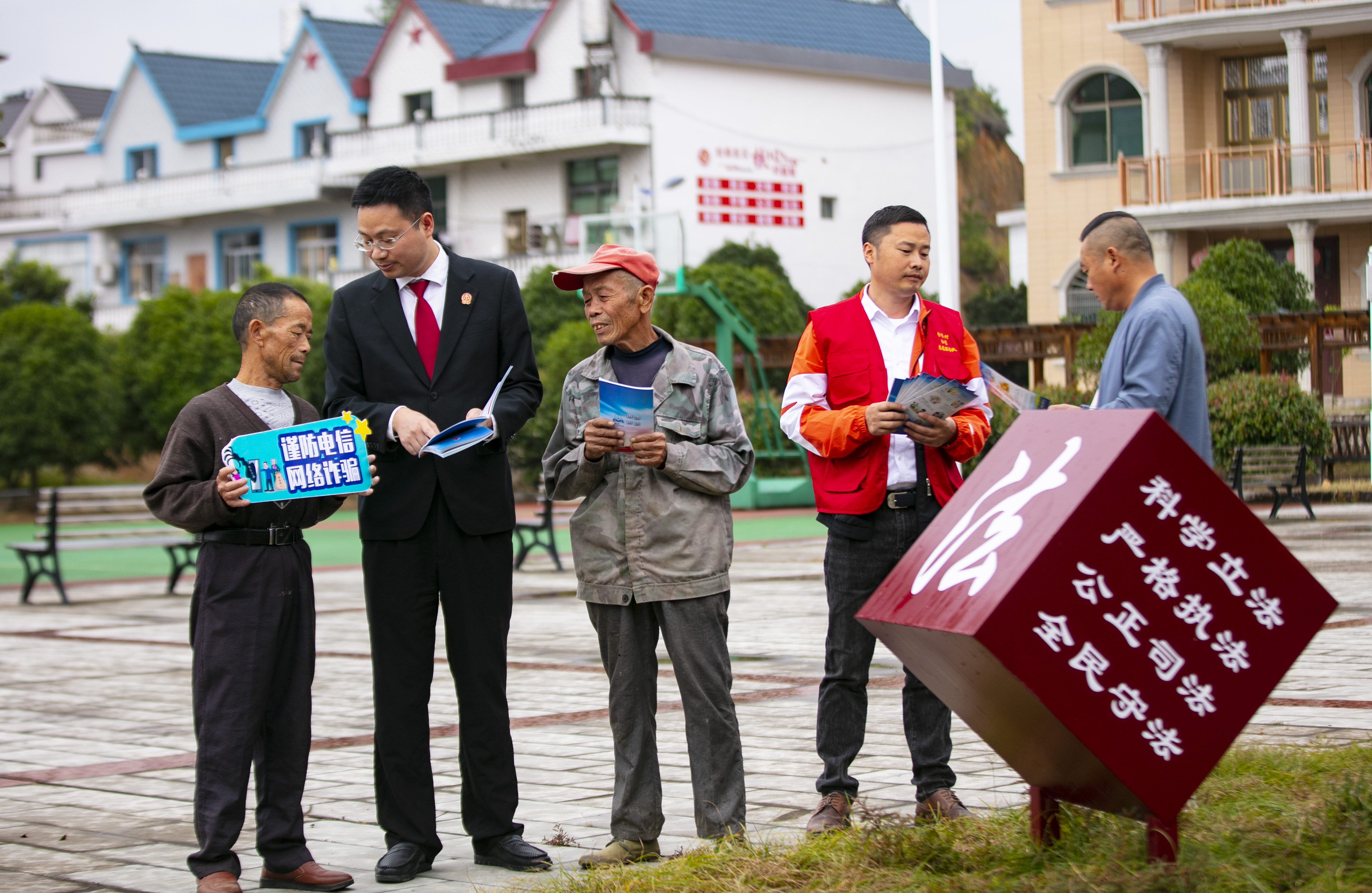 近日,江西省上饒市橫峰縣人民法院積極發(fā)揮“聯村法官+”機制在訴源治理中的作用,組織聯村法官到各鄉(xiāng)村開展普法宣傳活動,通過設立法律咨詢點、開展流動宣講等形式,向村民宣傳法律法規(guī)和防詐騙知識,引導村民學法、知法、守法、用法,從源頭上筑牢安全防范屏障。圖為聯村法官和網格員為村民開展反詐普法宣傳。