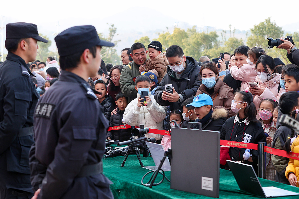 為迎接即將到來的第四個(gè)中國人民警察節(jié), 1月7日,浙江省舟山市公安局在市綜合警務(wù)訓(xùn)練基地舉行警營開放日活動(dòng),市民現(xiàn)場零距離體驗(yàn)警務(wù)裝備、觀看警用無人機(jī)、警用摩托車、重裝防爆小隊(duì)技戰(zhàn)術(shù)等科目表演,增強(qiáng)市民對公安工作的理解和支持,營造警民一家親的和諧氛圍。