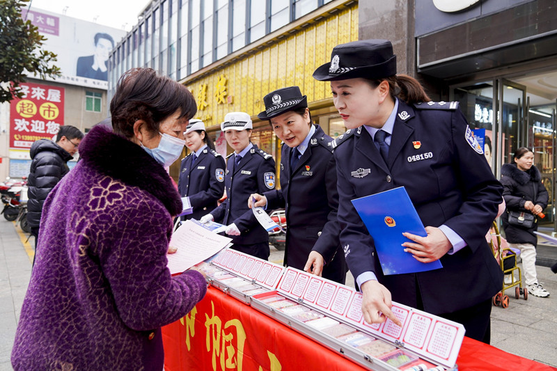 湖北省十堰市公安機關常態(tài)化通過懸掛橫幅標語、設置咨詢臺、發(fā)放宣傳彩頁、現(xiàn)場講解等多種形式,向群眾宣傳禁毒、反詐、交通安全等相關知識,教育引導群眾提升安全防范意識。