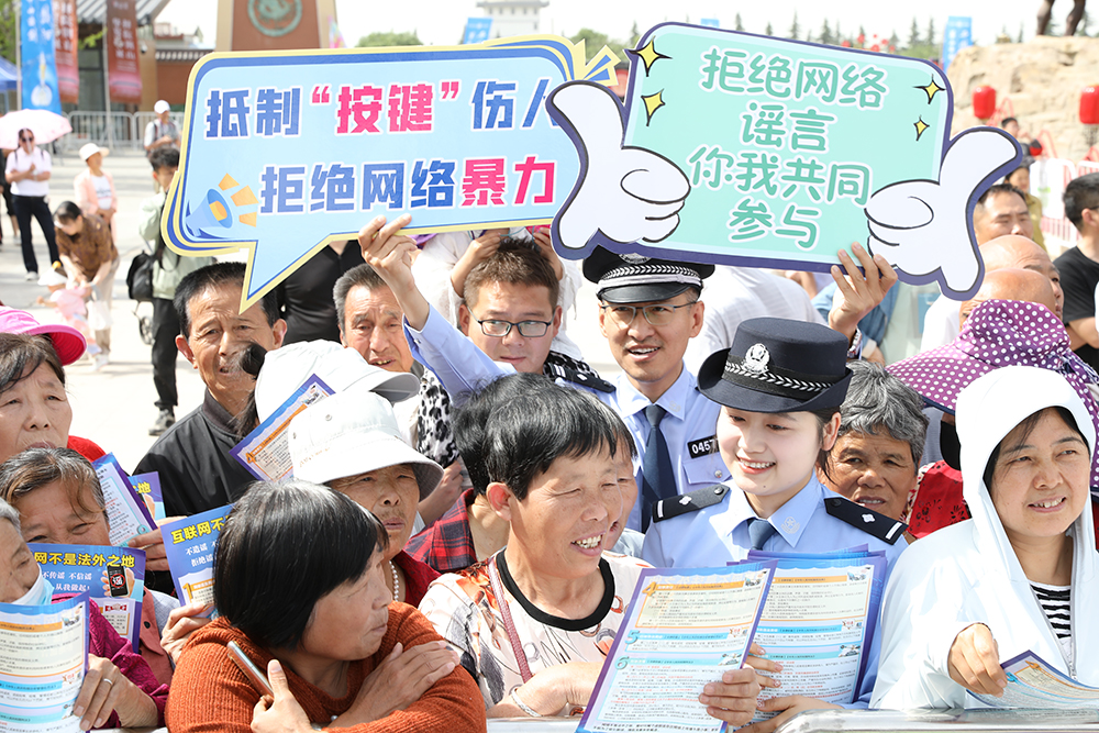 5月11日,陜西省富平縣公安局網(wǎng)安大隊(duì)組織民警輔警在旅游景區(qū)開(kāi)展“拒絕網(wǎng)絡(luò)謠言,你我共同參與”宣傳活動(dòng)。