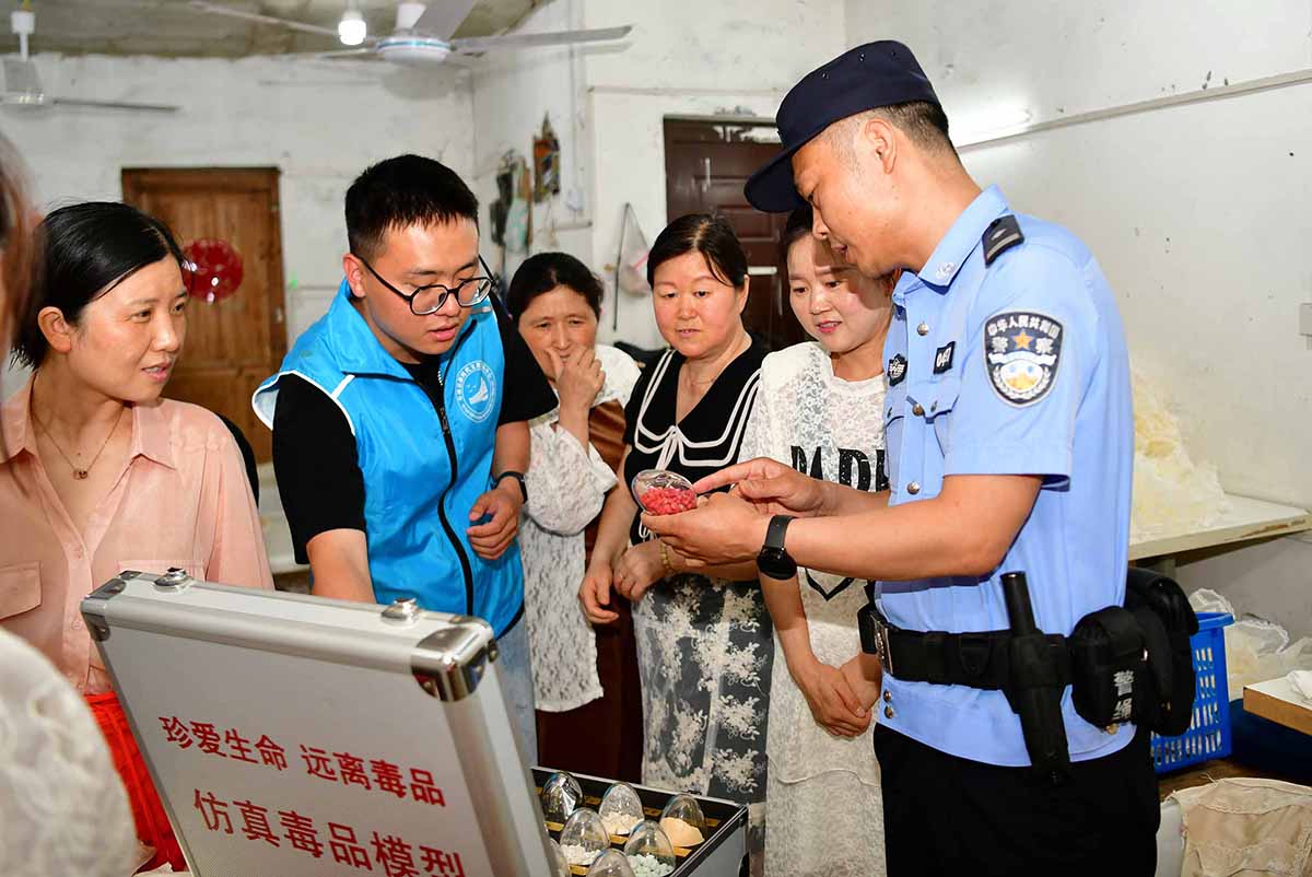 5月20日,安徽省阜南縣鹿城鎮(zhèn)駱寨社區(qū)文明實(shí)踐站聯(lián)合縣公安局水上派出所開(kāi)展“遠(yuǎn)離毒品、幸福家園 ”禁毒宣傳進(jìn)微型企業(yè)活動(dòng),民警與工作人員利用仿真毒品模具向群眾講解如何辨別毒品類(lèi)型和毒品的危害性,提高識(shí)毒、防毒能力。