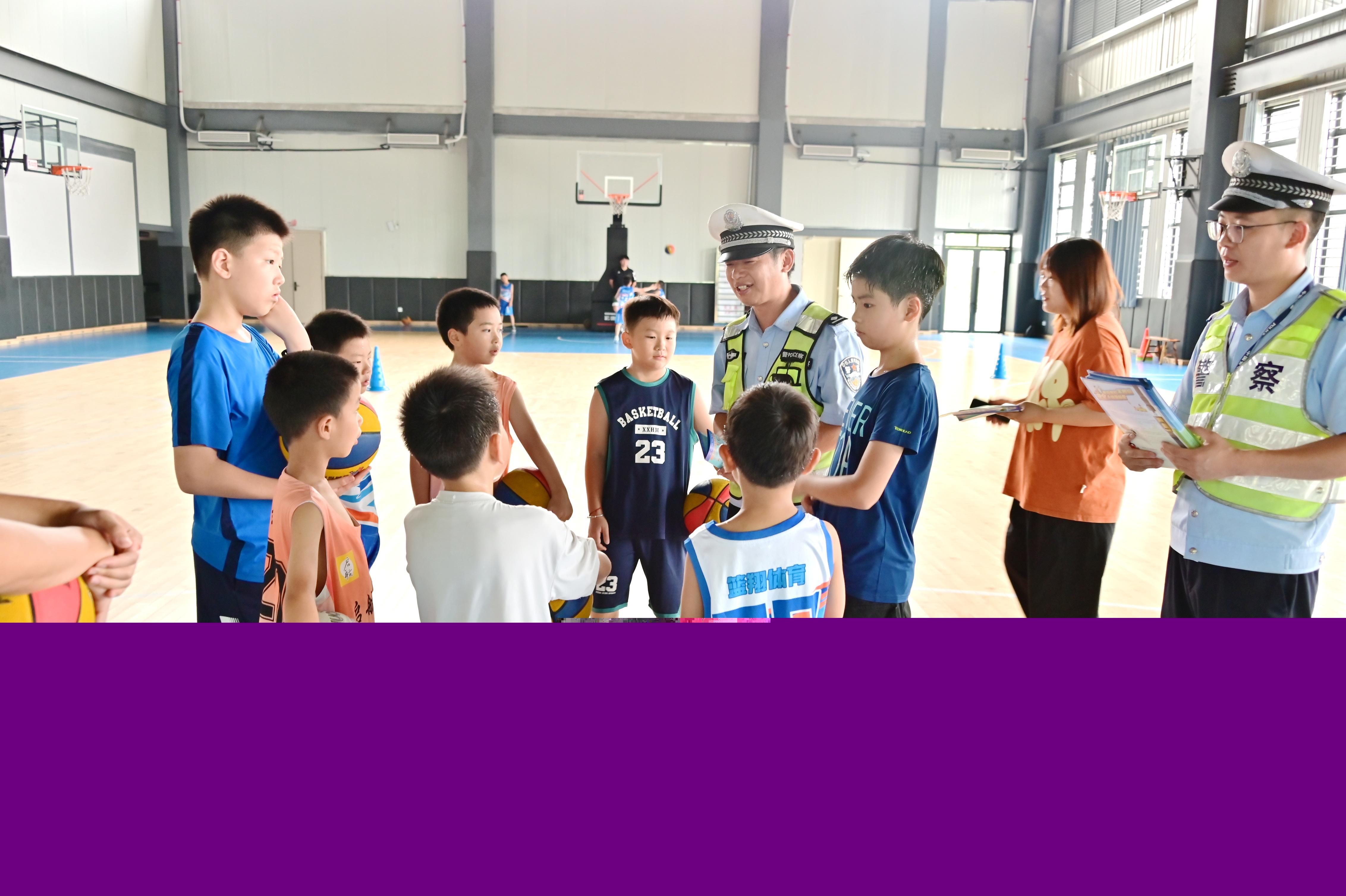 圖為7月23日,民輔警在武寧縣藍翔球館向小球員們宣傳交通安全知識并進行投籃互動。