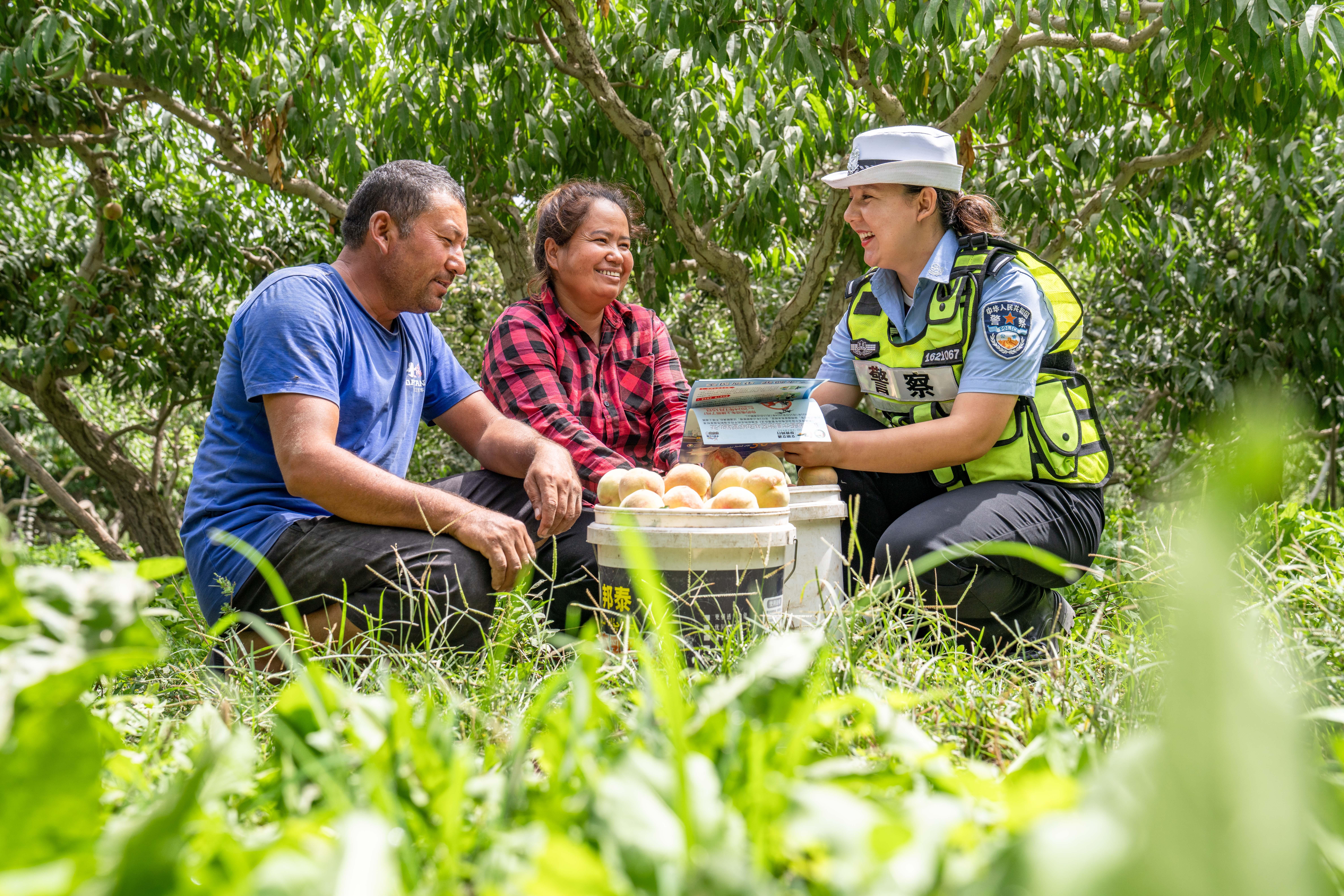 7月26日,新疆葉城縣公安局結合夏季治安特點,通過矛盾糾紛排查、安全防范宣講、助農(nóng)服務,深耕“果園警務”,以實際行動護航“甜蜜經(jīng)濟”。民輔警挽起袖子,加入到群眾的勞作之中。他們有的幫助群眾采摘成熟的果實,有的小心翼翼的將果實放進包裝箱,有的幫忙搬運箱子,將豐收的喜悅進行傳遞。