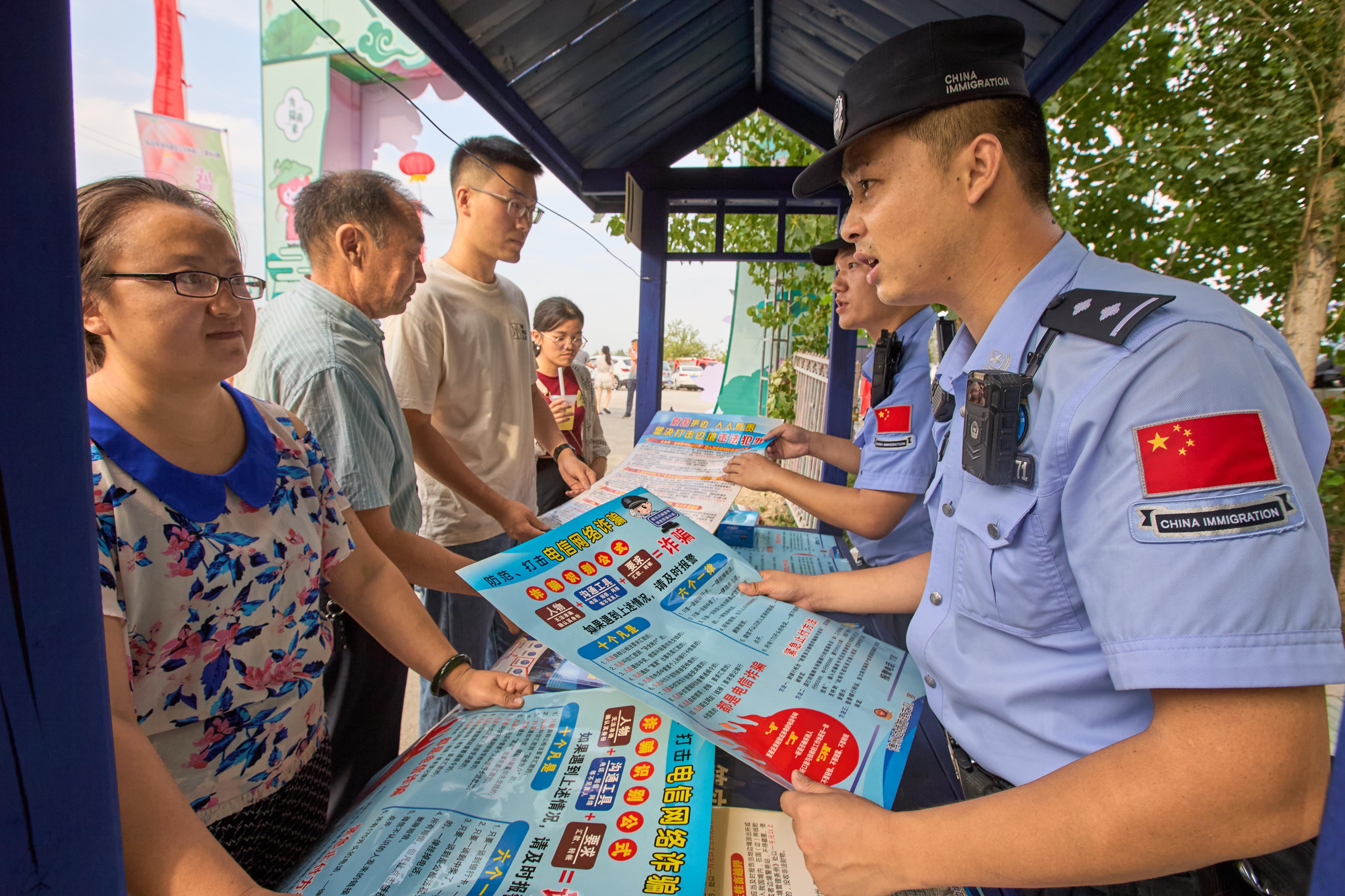 7月25日至30日,新疆博樂市貝林哈日莫墩鄉(xiāng)舉辦荷花文化旅游節(jié),百畝荷塘荷花競相綻放,吸引大量游客前來賞荷游玩。博州邊境管理支隊博樂邊境管理大隊貝林哈日莫墩邊境派出所利用這一有利契機,在開展景區(qū)執(zhí)勤服務的同時,組成法治宣傳小組,與游客積極互動開展邊境法律法規(guī)和防范電信網(wǎng)絡詐騙宣傳。夏日炎炎,百畝荷塘荷葉翻轉,依畔廊橋清風徐來,游客在欣賞荷塘美景的同時,在輕松愉悅的氛圍中學習法律知識。