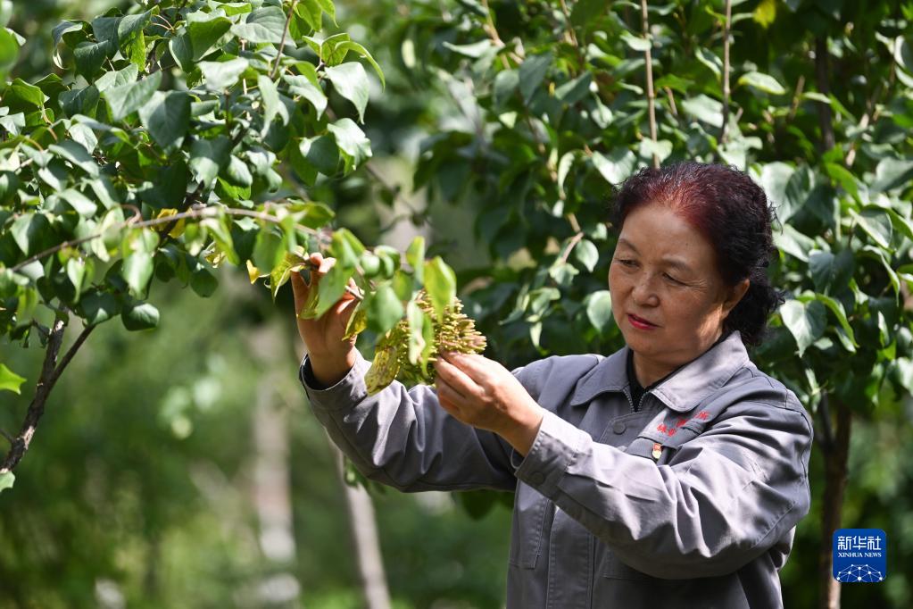 在青海省西寧市林業(yè)科學(xué)研究所的培育基地內(nèi),張錦梅在查看丁香生長(zhǎng)情況(9月14日攝)。新華社記者 張龍 攝
