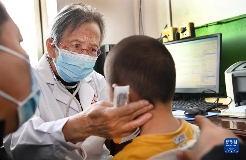 路生梅在陜西佳縣人民醫(yī)院“路生梅診室”為患兒診斷病情(2022年9月17日攝)。新華社記者 陶明 攝