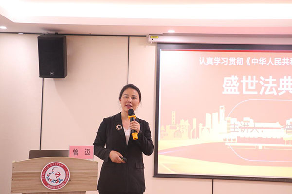 課上,曾邁首先系統(tǒng)講解了民法典的重大意義。她講到,如果說《憲法》是我國的根本大法,具有最高法律效力,那么《民法典》就是一部人民至上的法典,被稱為“社會生活的百科全書”,是新中國第一部以法典命名的法律。《民法典》的頒布實施,是堅持以人民為中心、保障人民權(quán)益實現(xiàn)和發(fā)展的必然要求,是發(fā)展社會主義市場經(jīng)濟、鞏固社會主義基本經(jīng)濟制度的必然要求,是提高我們黨治國理政水平的必然要求,是衡量各級黨政機關(guān)履行為人民服務(wù)宗旨的重要尺度。