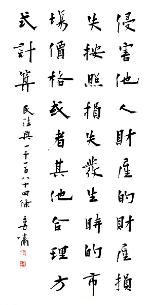 第一千一百八十四條 侵害他人財(cái)產(chǎn)的,財(cái)產(chǎn)損失按照損失發(fā)生時(shí)的市場(chǎng)價(jià)格或者其他合理方式計(jì)算。