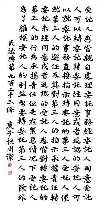 民法典第九百二十三條 受托人應(yīng)當(dāng)親自處理委托事務(wù)。經(jīng)委托人同意,受托人可以轉(zhuǎn)委托。轉(zhuǎn)委托經(jīng)同意或者追認(rèn)的,委托人可以就委托事務(wù)直接指示轉(zhuǎn)委托的第三人,受托人僅就第三人的選任及其對第三人的指示承擔(dān)責(zé)任。轉(zhuǎn)委托未經(jīng)同意或者追認(rèn)的,受托人應(yīng)當(dāng)對轉(zhuǎn)委托的第三人的行為承擔(dān)責(zé)任;但是,在緊急情況下受托人為了維護(hù)委托人的利益需要轉(zhuǎn)委托第三人的除外。