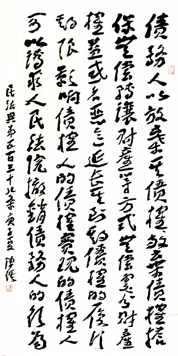 “書·法”活動旨在為創(chuàng)新法治宣傳教育,多開一點腦洞、多花一點心思、多出一點力量、多做一點貢獻,引領(lǐng)和推動更多的人拿起筆來學(xué)法、寫法,在不斷“書·法”過程中,提升自身的法治素養(yǎng),在全社會弘揚法治精神。