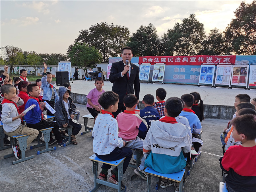 近日,江西省新余市兩級法院采取合唱、快板、法律問答、普法情景劇等群眾喜聞樂見的形式,積極開展民法典巡回宣講活動,實現(xiàn)全市39個鄉(xiāng)鎮(zhèn)全覆蓋,觀眾達4000余人,發(fā)放宣傳冊近萬份,獲得群眾廣泛好評。