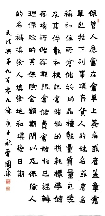 民法典第九百零九條 保管人應(yīng)當(dāng)在倉單上簽名或者蓋章。倉單包括下列事項(xiàng):
