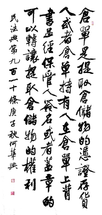 民法典第九百一十條 倉單是提取倉儲(chǔ)物的憑證。存貨人或者倉單持有人在倉單上背書并經(jīng)保管人簽名或者蓋章的,可以轉(zhuǎn)讓提取倉儲(chǔ)物的權(quán)利。