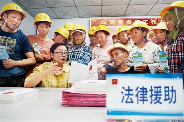 2020年8月26日,河北省唐山市豐潤(rùn)區(qū)司法局組織律師走進(jìn)社區(qū)、工地,為群眾提供免費(fèi)法律援助。人民圖片 朱大勇/攝