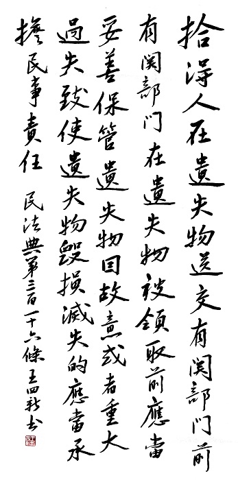 民法典第三百一十六條 拾得人在遺失物送交有關部門前,有關部門在遺失物被領取前,應當妥善保管遺失物。因故意或者重大過失致使遺失物毀損、滅失的,應當承擔民事責任。
