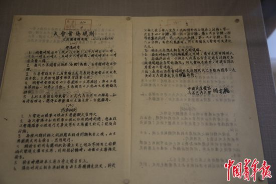 展廳第二部分“中共六大的籌備與召開”中展出的大會會場規(guī)則文件。中青報·中青網(wǎng)駐俄羅斯記者 張?。瘮z
