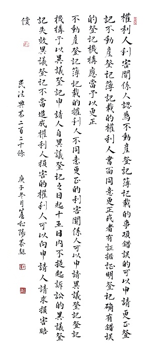 民法典第二百二十條 權(quán)利人、利害關(guān)系人認(rèn)為不動(dòng)產(chǎn)登記簿記載的事項(xiàng)錯(cuò)誤的,可以申請(qǐng)更正登記。不動(dòng)產(chǎn)登記簿記載的權(quán)利人書面同意更正或者有證據(jù)證明登記確有錯(cuò)誤的,登記機(jī)構(gòu)應(yīng)當(dāng)予以更正。