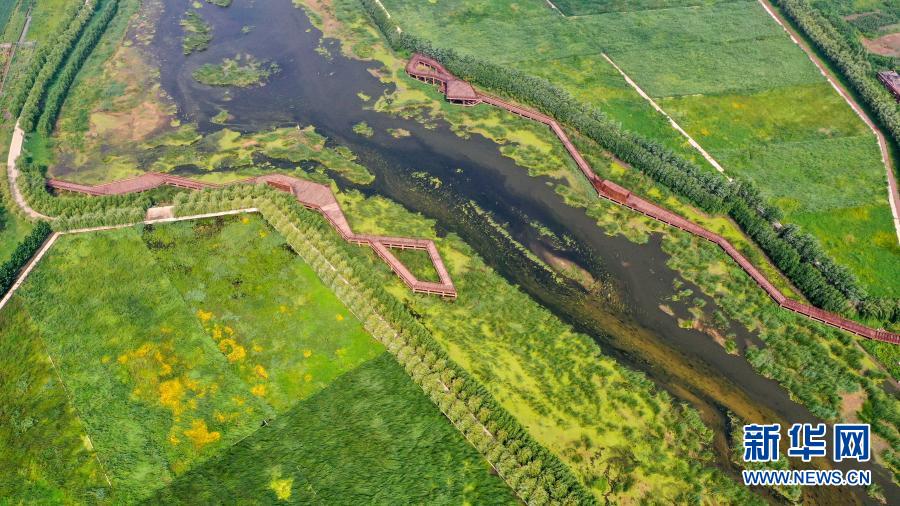經(jīng)過遼河流域系統(tǒng)治理和生態(tài)修復后形成的四平市西湖濕地公園(2020年8月4日攝,無人機照片)。新華社記者 張楠 攝