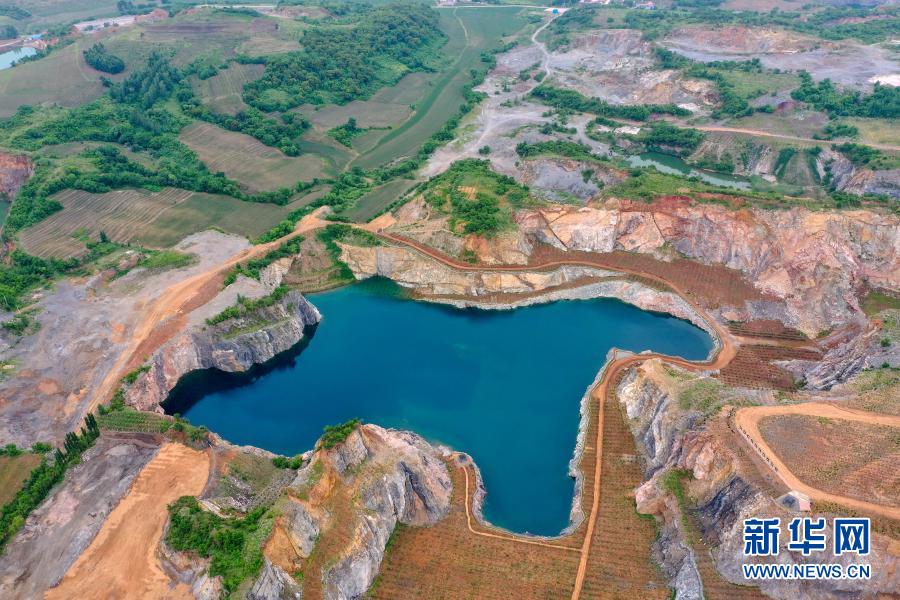 在四平市梨樹縣孟家?guī)X鎮(zhèn)馬家油坊村,實施礦山復綠生態(tài)修復工程后形成的“小天池”景區(qū)(2020年6月22日攝,無人機照片)。新華社記者 張楠 攝