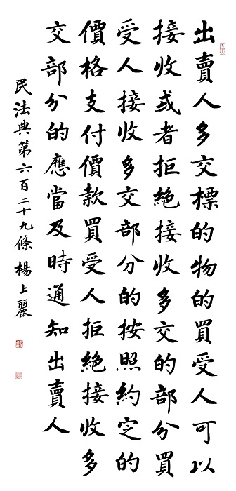 民法典第六百二十九條 出賣(mài)人多交標(biāo)的物的,買(mǎi)受人可以接收或者拒絕接收多交的部分。買(mǎi)受人接收多交部分的,按照約定的價(jià)格支付價(jià)款;買(mǎi)受人拒絕接收多交部分的,應(yīng)當(dāng)及時(shí)通知出賣(mài)人。