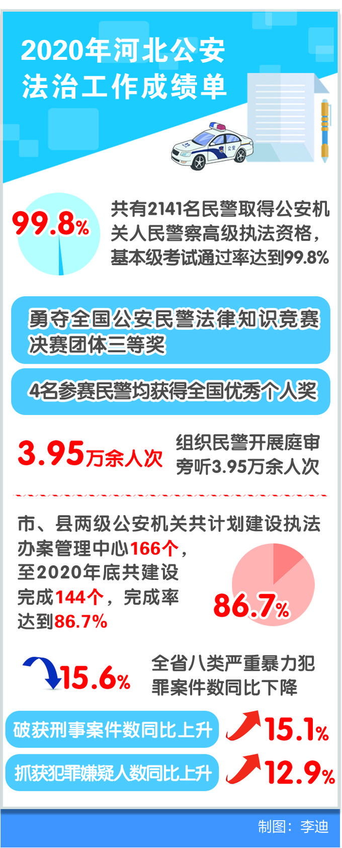 據(jù)統(tǒng)計,2020年河北市、縣兩級公安機關(guān)共計劃建設(shè)執(zhí)法辦案管理中心166個,至2020年底共建設(shè)完成144個,完成率達86.7%。