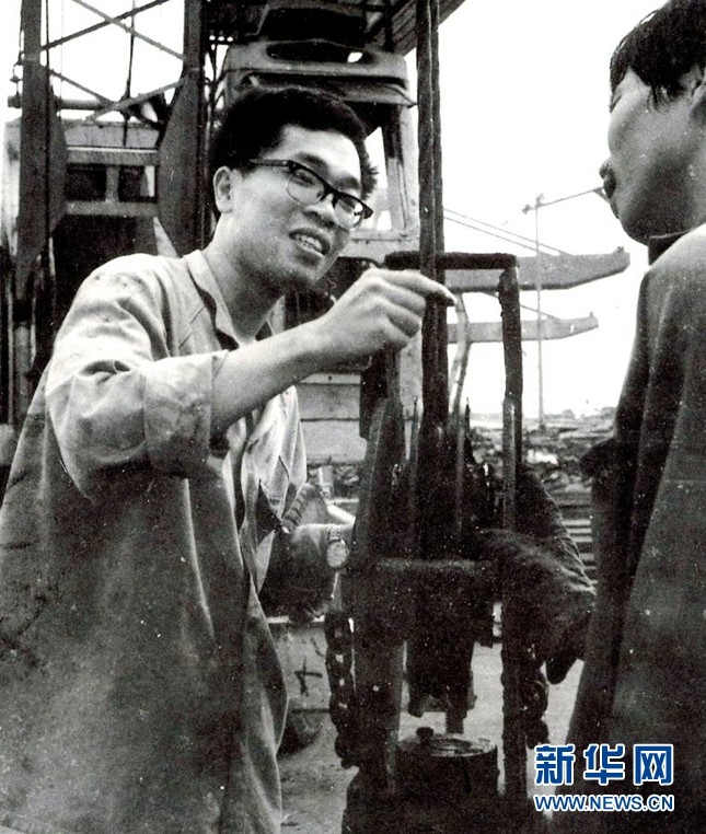 包起帆(左)在上海港碼頭和工友一道研究裝卸貨物工作中存在的問(wèn)題(資料照片)。新華社發(fā)