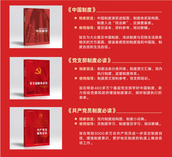 李鐵教授的制度學(xué)系列叢書(shū)分為法制篇——《中國(guó)政治制度》《中國(guó)經(jīng)濟(jì)制度》《中國(guó)文化制度》《中國(guó)社會(huì)制度》《中國(guó)生態(tài)文明制度》《黨內(nèi)法規(guī)制度》《中國(guó)軍事制度》《中國(guó)法治制度》《中國(guó)農(nóng)業(yè)制度》《中國(guó)科技制度》,自信篇——《5000年制度歷程》《中國(guó)制度》《黨支部制度必讀》《共產(chǎn)黨員制度必讀》《中國(guó)科舉制度》《中國(guó)文官制度》《中國(guó)法律制度》《中國(guó)行政制度》《把權(quán)利關(guān)進(jìn)制度的籠子》,創(chuàng)新篇——《中國(guó)民法典與中國(guó)制度》《百年制度豐碑》等等。