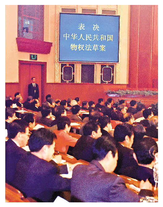 2007年3月,十屆全國人大五次會議通過《中華人民共和國物權(quán)法》,對于堅持和完善國家基本經(jīng)濟制度、保護權(quán)利人的物權(quán)、加快構(gòu)建社會主義和諧社會,具有十分重要的意義。(資料圖片)