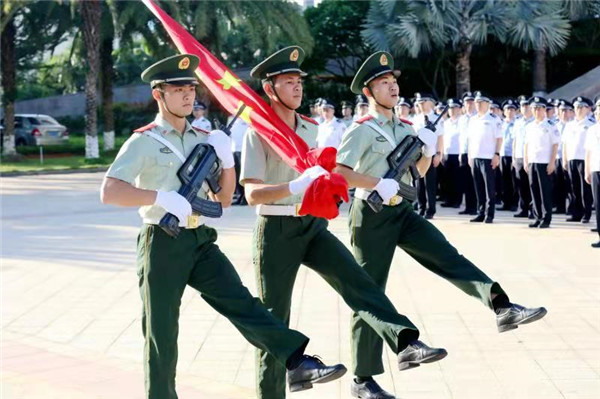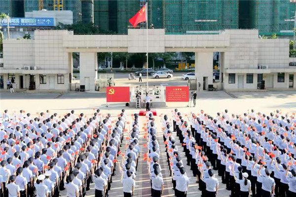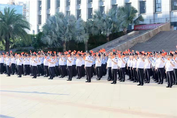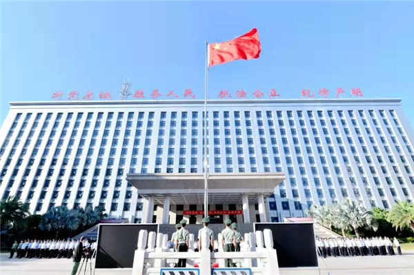 盛夏時(shí)節(jié),舉國(guó)同慶,神州大地,繁花似錦。7月1日上午,中國(guó)共產(chǎn)黨成立100周年當(dāng)天,海南省公安廳在廳機(jī)關(guān)大院舉行了隆重、神圣的升國(guó)旗儀式。在嘹亮的國(guó)歌聲中,廳機(jī)關(guān)和廳直屬單位民警在副省長(zhǎng)、公安廳黨委書記、廳長(zhǎng)閆希軍的帶領(lǐng)下整齊列隊(duì),面向冉冉升起的五星紅旗莊嚴(yán)敬禮。