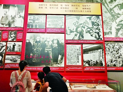 延安時期,黨在領(lǐng)導(dǎo)邊區(qū)法治建設(shè)的過程中,進(jìn)行了歷史性探索?!蛾兏蕦庍厖^(qū)施政綱領(lǐng)》成為抗戰(zhàn)時期邊區(qū)的根本大法?!包S克功案件”的審判,彰顯了從嚴(yán)治黨、從嚴(yán)治軍的決心?!榜R錫五審判方式”的確立,為新民主主義司法制度注入了新鮮血液,也為新中國司法制度的建立提供了有益經(jīng)驗(yàn)。圖為觀眾在參觀抗日根據(jù)地建設(shè)有關(guān)情況。