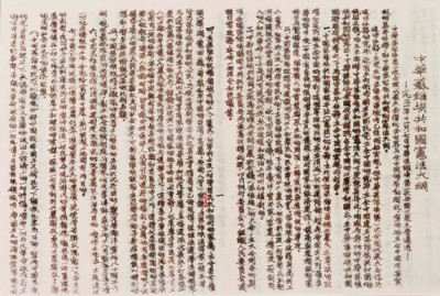 《中華蘇維埃共和國憲法大綱》是第一部由勞動人民制定的根本法,是共產(chǎn)黨領(lǐng)導(dǎo)人民反帝反封建的偉大綱領(lǐng),為以后制定民主憲法提供了寶貴經(jīng)驗(yàn)。圖為展覽中的《中華蘇維埃共和國憲法大綱》文本。