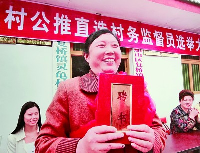 2010年3月,修改后的全國人大和地方各級人大選舉法規(guī)定,城鄉(xiāng)按相同人口比例選舉人大代表,基層群眾的民主意識得到進(jìn)一步增強(qiáng)。圖為四川省遂寧市復(fù)橋鎮(zhèn)靈龜村舉行公推直選村務(wù)監(jiān)督員選舉活動。