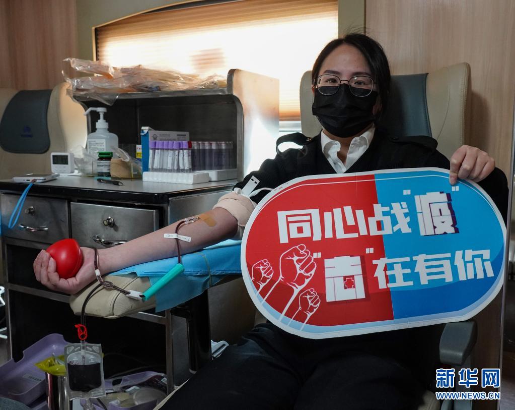 2020年3月5日,杭州海關(guān)青年關(guān)員在獻(xiàn)血車上獻(xiàn)血。新華社發(fā)(趙凡瑜 攝)