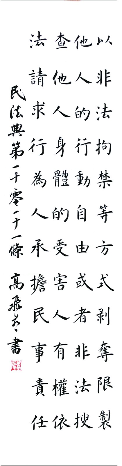 民法典第一千零一十一條 以非法拘禁等方式剝奪、限制他人的行動自由,或者非法搜查他人身體的,受害人有權(quán)依法請求行為人承擔(dān)民事責(zé)任。