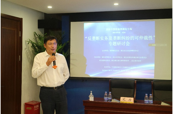 9月17日,由中國國際經(jīng)濟(jì)貿(mào)易仲裁委員會湖北分會和湖北省企業(yè)法律顧問協(xié)會主辦,湖北省貿(mào)促會、武漢市貿(mào)促會、湖北精以相天律師事務(wù)所等單位協(xié)辦的2021中國仲裁周湖北專場活動--“反壟斷實(shí)務(wù)及壟斷糾紛的可仲裁性專題研討會”在武漢成功舉辦,來自在漢央企和湖北國企、高校及律師事務(wù)所的法務(wù)高管、仲裁員、律師、學(xué)者等百余人參加了本次研討會。研討會由貿(mào)仲仲裁員、湖北省商務(wù)廳二級巡視員艾力先生主持。