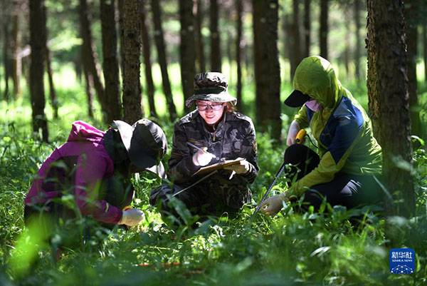 工作人員在塞罕壩機(jī)械林場(chǎng)采集數(shù)據(jù)(2017年7月12日攝)。新華社記者 王曉 攝