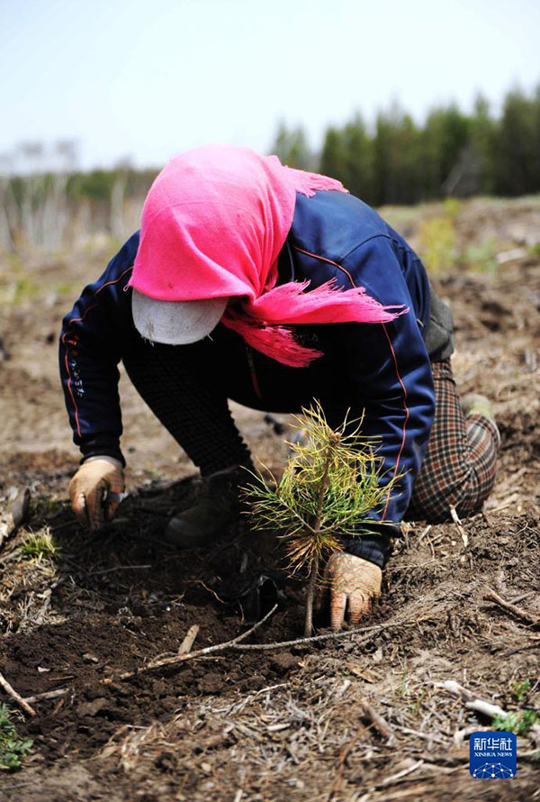塞罕壩機(jī)械林場(chǎng)的員工在植樹(2014年5月13日攝)。新華社記者 王曉 攝