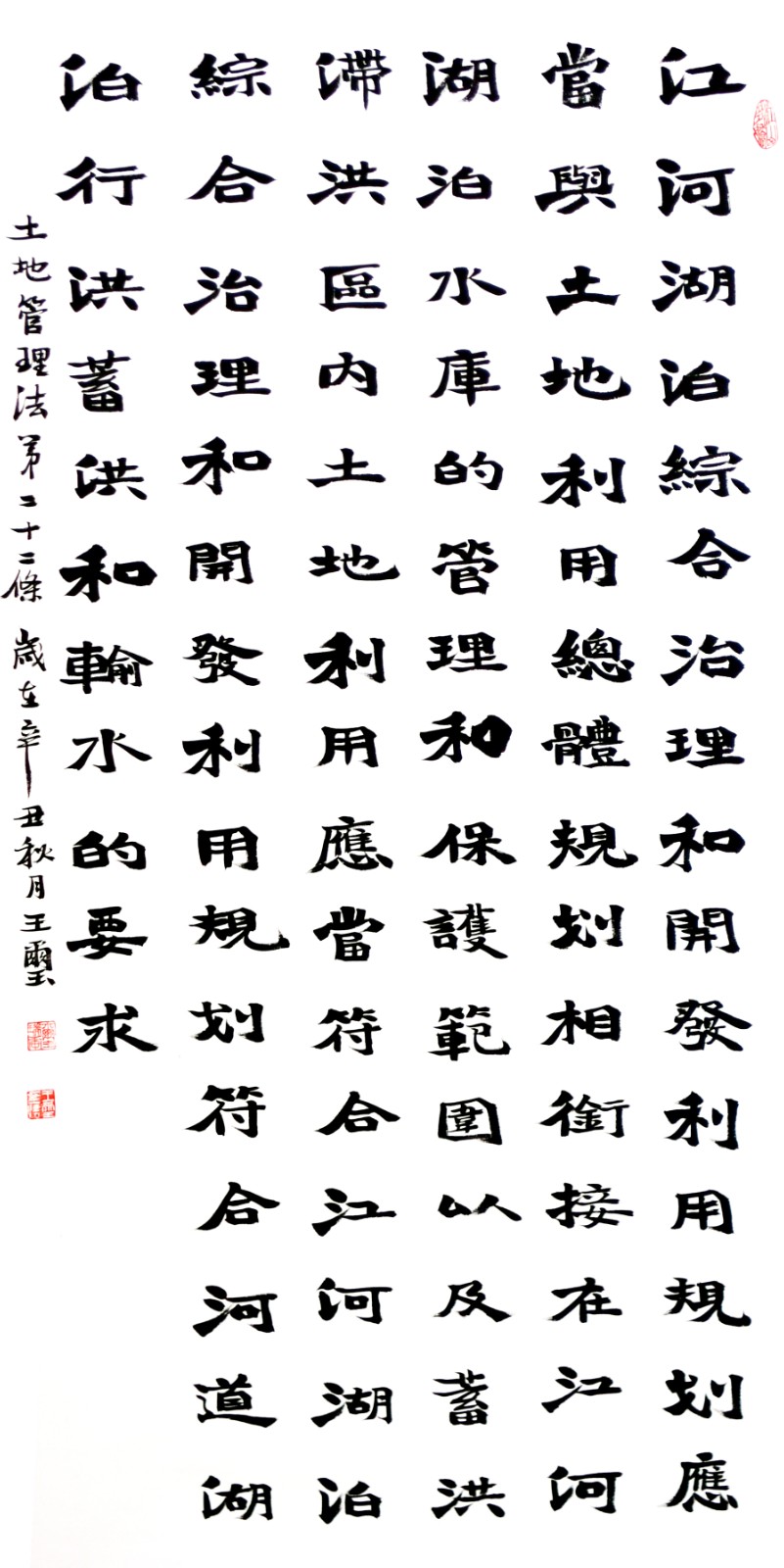 繼1600余位書法家參與書寫《中華人民共和國民法典》全部1260條法條之后,法治日報社聯(lián)合自然資源部法規(guī)司、自然資源部書畫研究會和北京昌平書法家協(xié)會,將筆端對準(zhǔn)土地管理“一法一條例”,即《中華人民共和國土地管理法》和《中華人民共和國土地管理法實施條例》。