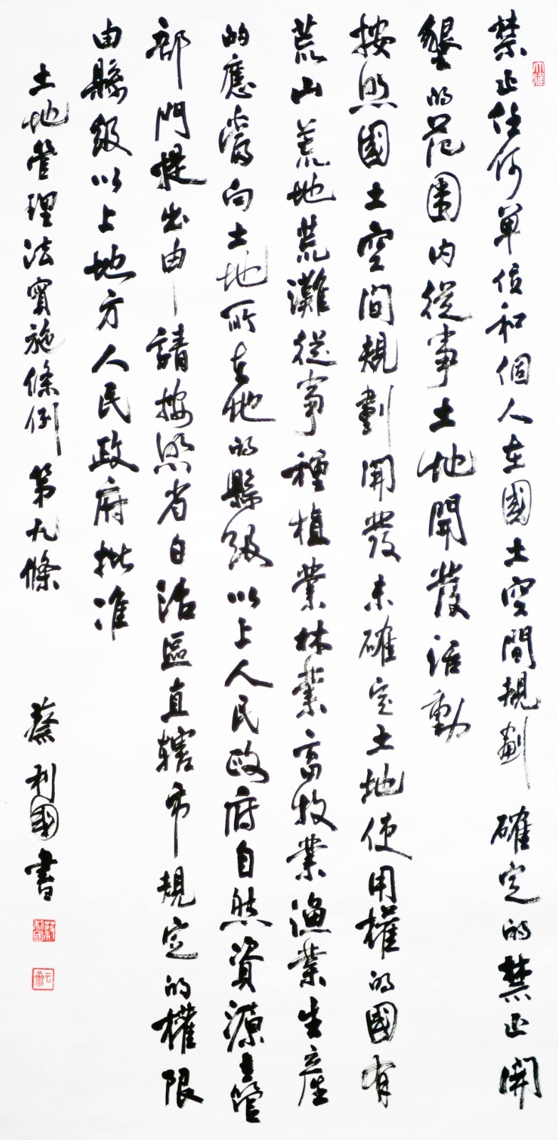 繼1600余位書法家參與書寫《中華人民共和國民法典》全部1260條法條之后,法治日報社聯(lián)合自然資源部法規(guī)司、自然資源部書畫研究會和北京昌平書法家協(xié)會,將筆端對準土地管理“一法一條例”,即《中華人民共和國土地管理法》和《中華人民共和國土地管理法實施條例》。