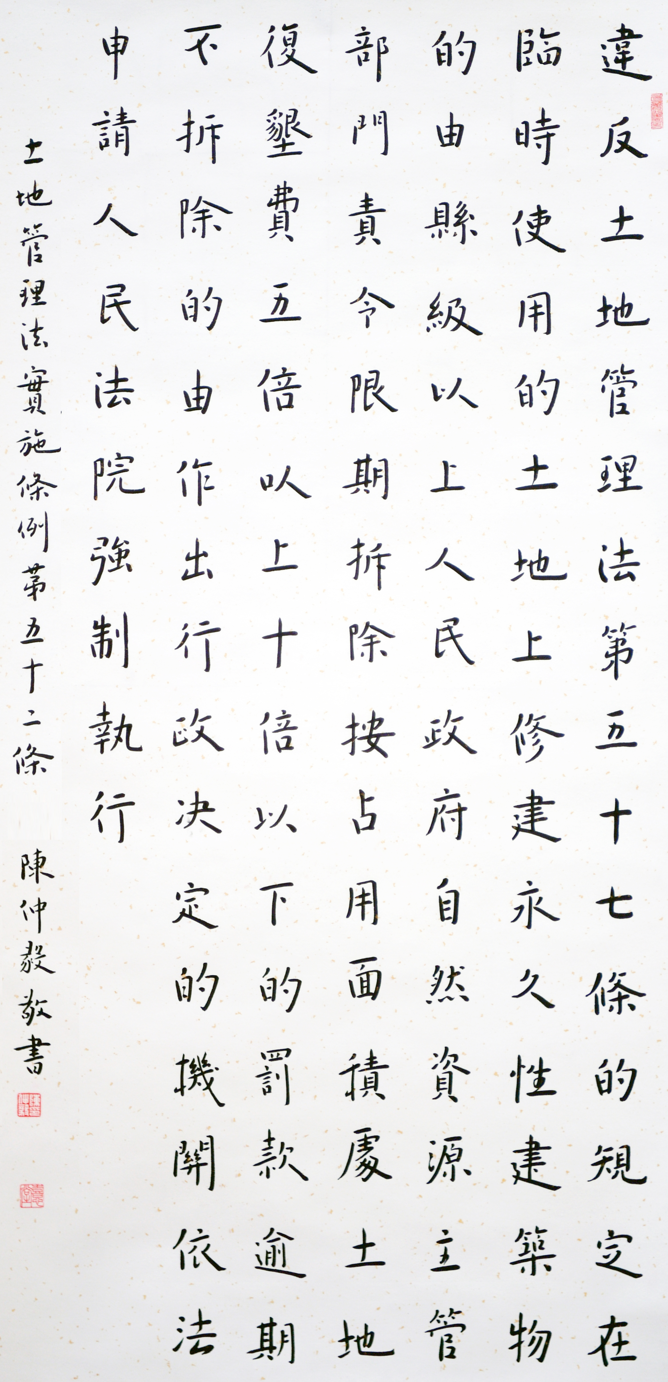繼1600余位書法家參與書寫《中華人民共和國民法典》全部1260條法條之后,法治日報(bào)社聯(lián)合自然資源部法規(guī)司、自然資源部書畫研究會(huì)和北京昌平書法家協(xié)會(huì),將筆端對準(zhǔn)土地管理“一法一條例”,即《中華人民共和國土地管理法》和《中華人民共和國土地管理法實(shí)施條例》。