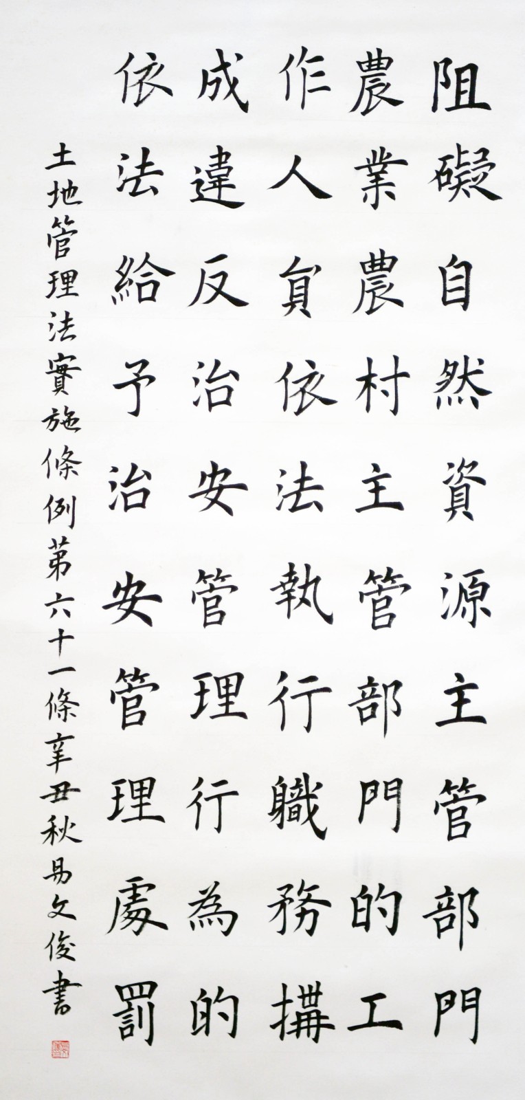 繼1600余位書法家參與書寫《中華人民共和國民法典》全部1260條法條之后,法治日報社聯(lián)合自然資源部法規(guī)司、自然資源部書畫研究會和北京昌平書法家協(xié)會,將筆端對準土地管理“一法一條例”,即《中華人民共和國土地管理法》和《中華人民共和國土地管理法實施條例》。