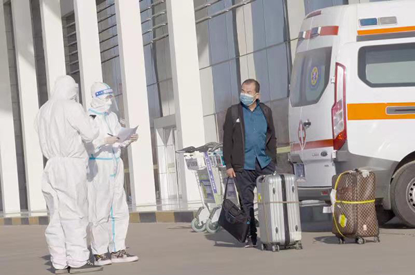 “收到,救護車已經到位?!眳侵沂旭v銀川河東機場疫情防控專班工作人員馬東陽和同事相互檢查防護服有沒有破損,護目鏡、口罩有沒有戴到位,確定沒有任何紕漏后,兩個“大白”走進境外旅客等候區(qū),準備迎接楊某。