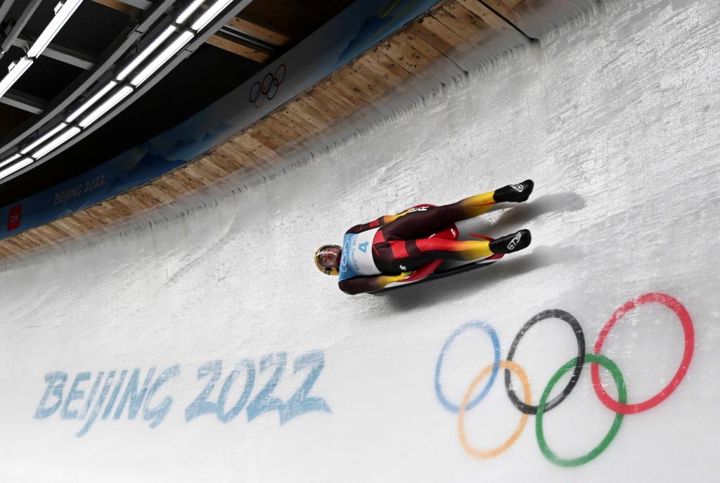 2月5日,德國選手約翰內(nèi)斯·路德維希在北京2022年冬奧會男子單人雪橇項(xiàng)目比賽中。新華社記者 賀長山 攝