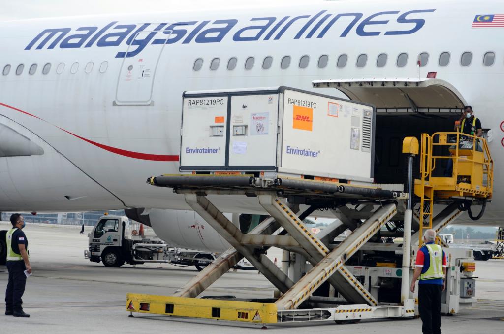 2021年8月20日,首批中國康希諾新冠疫苗運(yùn)抵馬來西亞吉隆坡國際機(jī)場(chǎng)。(新華社發(fā),馬來西亞科學(xué)、工藝和創(chuàng)新部供圖)