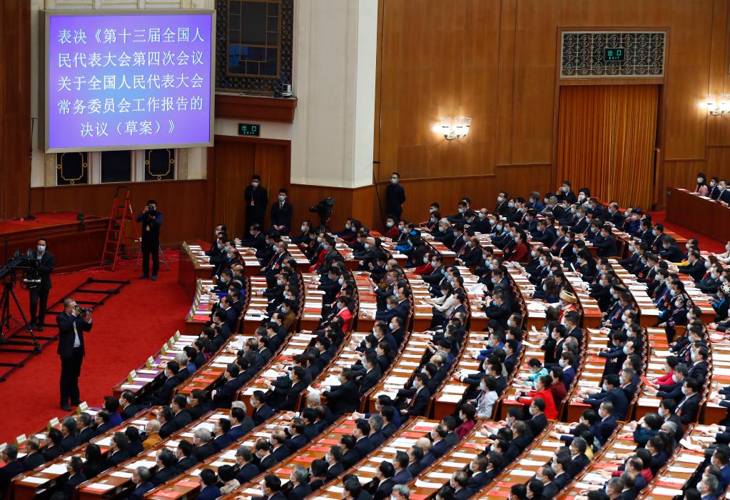 2021年3月11日,第十三屆全國人民代表大會(huì)第四次會(huì)議在北京人民大會(huì)堂舉行閉幕會(huì)。(新華社記者張玉薇攝)