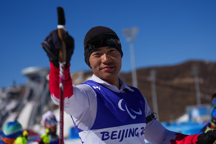 3月5日,中國選手劉子旭奪得北京冬殘奧會殘奧冬季兩項男子短距離(坐姿)比賽冠軍。新華社記者彭子洋攝
