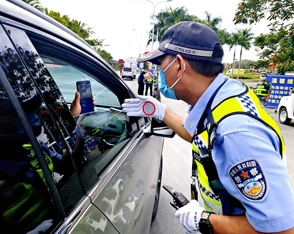 三亞交警通過擺放反光錐、設(shè)置警戒帶、增設(shè)引導(dǎo)標志標牌等方式,對進出車輛進行交通管控和交通指揮疏導(dǎo)。同時對過往車輛駕乘人員健康碼、行程碼、核酸檢測證明進行查驗、及時為群眾答疑解惑,加強車輛及人員的排查,確保不漏一車、不漏一人。