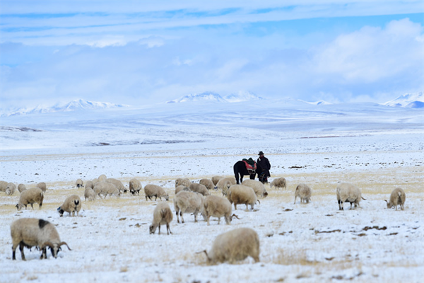 2021年10月,牧民在三江源國家公園黃河源園區(qū)放牧。新華社記者張龍攝