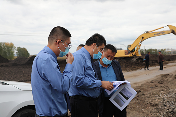圖為2021年9月26日,紅興隆檢察院公益訴訟部門干警實地查看轄區(qū)內(nèi)某煤礦塌陷地集成復(fù)墾區(qū)施工現(xiàn)場。 趙志超 攝