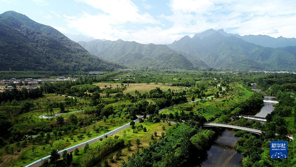 這是陜西省西安市長(zhǎng)安區(qū)秦嶺違建別墅“群賢別業(yè)”拆除后建設(shè)的秦嶺和諧森林公園(2019年7月26日攝,無人機(jī)照片)。新華社記者 劉瀟 攝